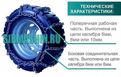 Цепи противоскольжения представляют собой сетку из круглозвенных цепей равномерно оплетающую шину по всей окружности. По сути это съемный протектор способный превратить обычную дорожную покрышку в колесо для бездорожья. Состоит из двух продольных цепей, проходящих по внутренней и наружной окружностям колеса соединенных поперечными цепями.