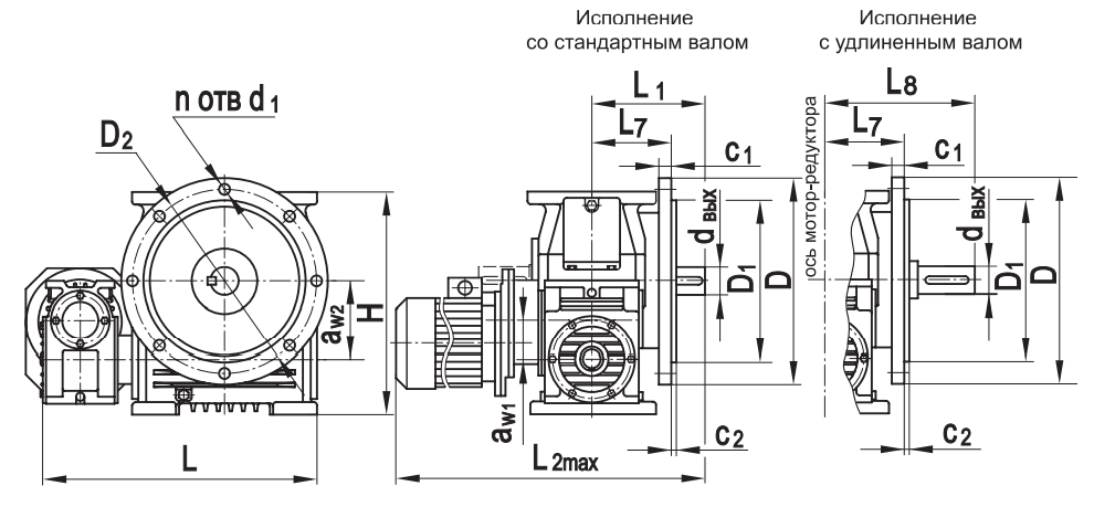 Типоразмер аW1 аW2 D D1 D2 H L* L1* L2max L3* L7 L8* c1 с2 d1 dвх dвых n