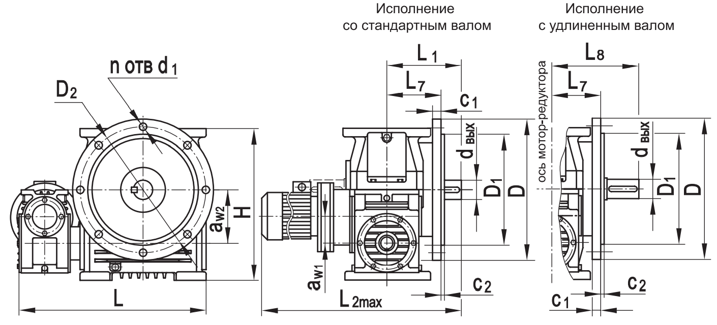 Типоразмер аW1 аW2 D D1 D2 H L* L1 L2max L3 L4 L8 с1 с2 d1 dвх dвых n