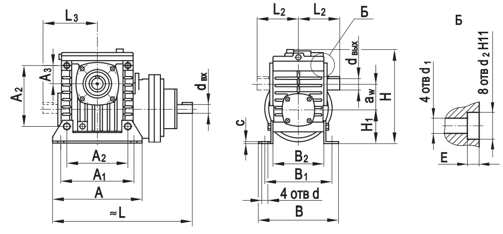 Типоразмер аW А А1 А2 А3 В В1 В2 L* L1max L2* L3*Н Н 1 сd d 1 d2 Еd вх dвых