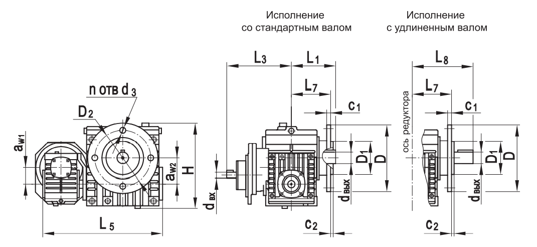 Типоразмер аW1 аW2 D D1 D2 H L1* L2max L3* L5 L7 L8*с 1 с2 d3 dвх dвых n
