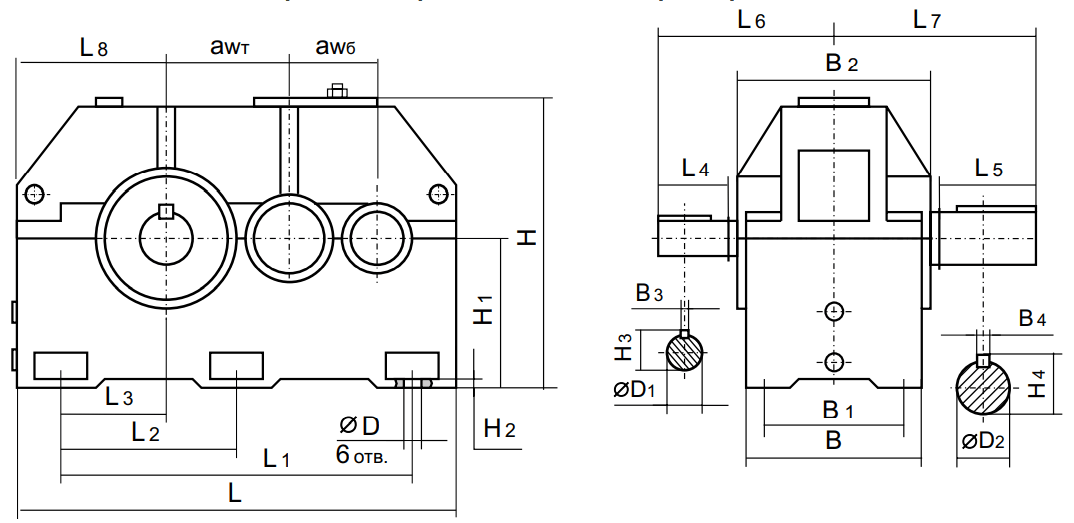 Размеры конца тихоходного вала в виде зубчатой полумуфты