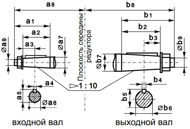 Размеры конца тихоходного вала в виде зубчатой полумуфты