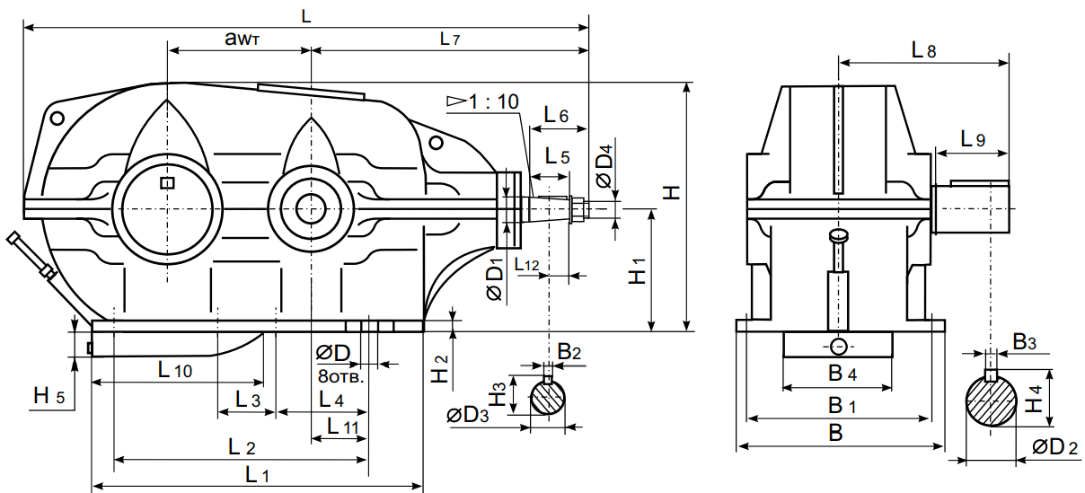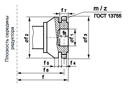 Размеры конца тихоходного вала в виде зубчатой полумуфты